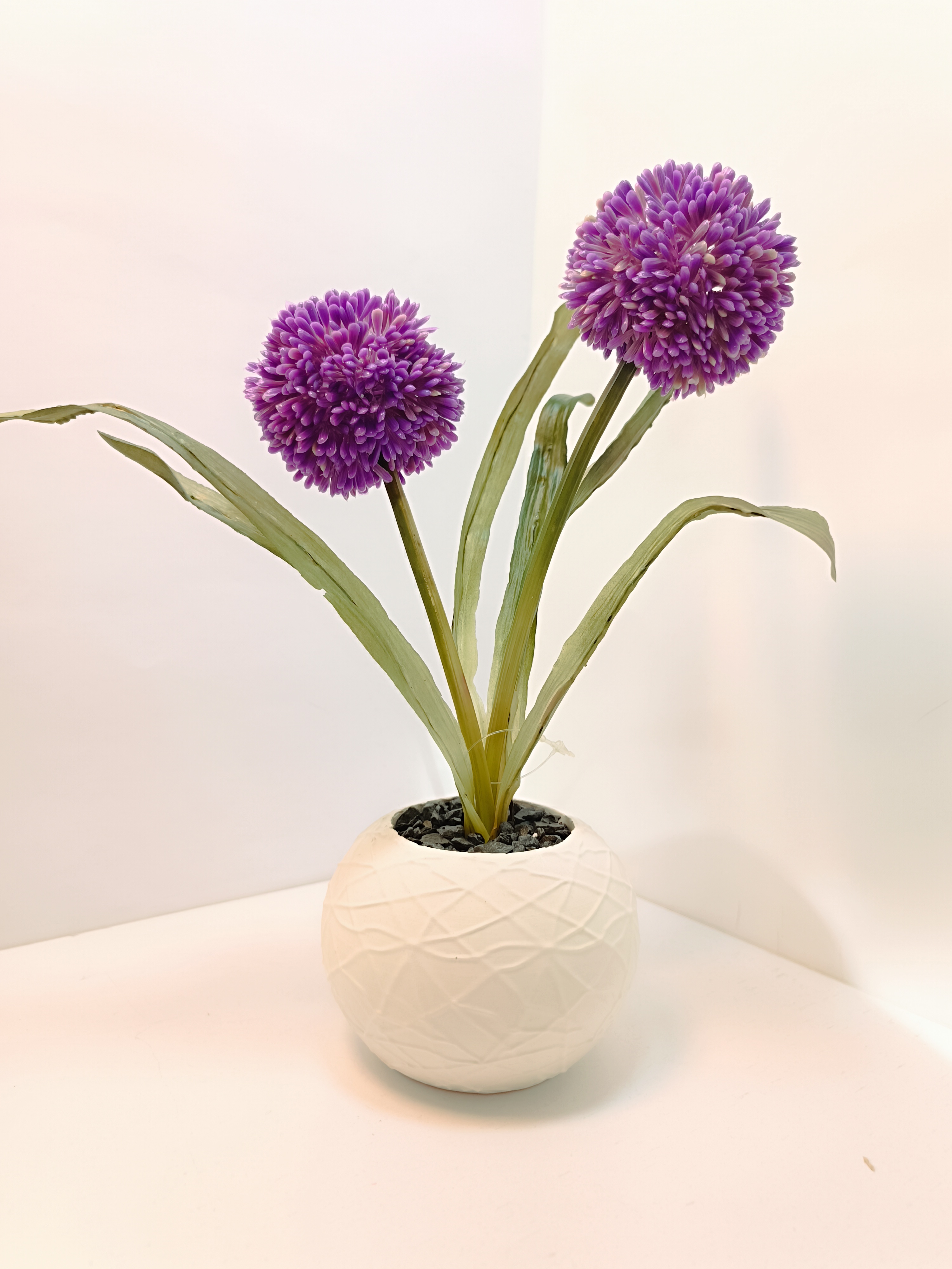 گلدان بزرگ با گل و برگ لمسی